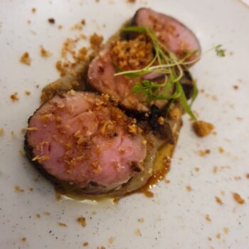 Pork Tenderloin, Jerusalem Artichoke, Apple, Walnut Oil. That sous vide pork tenderloin was heavenly. Now, I’m apprehensive of Jerusalem artichokes. Google effects of eating too many Jerusalem artichokes.