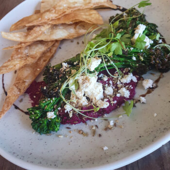 I hadn’t eaten meat for 5 days and wanted to ease my body into animal protein. We started with the Skordilia. No not Skordalia which is Greek potato and garlic dip. This was house made beetroot hummus, charred broccolini, fetta, house dukkah, crisps and balsamic reduction. Freaking hell I love a char on vegetables, it just adds a depth of flavour!