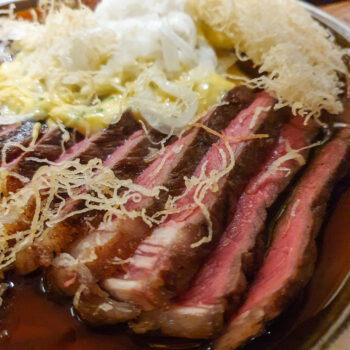 Lastly we had tender af steak with miso bernaise and house pickled onion. Served with their shallot bread and the don’t judge a book by its cover, kick arse delicious Rocket Salad, Miso Dressing, Kizame Nori. Wow! What a way to finish!